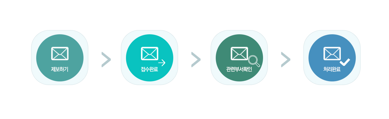 ㆍ 접수된 내용은 최대한 빠른 시일 내에 조사하여 처리하고 제보자가 원하는 방법을 통하여 결과를 회신하도록 하겠습니다.